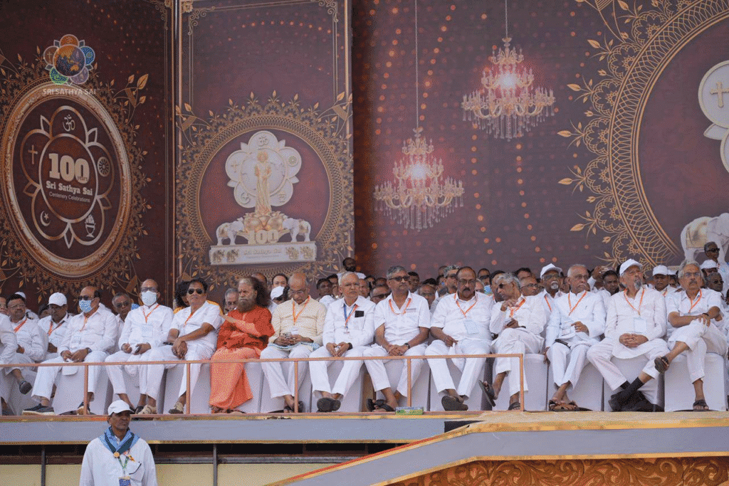 El Ministro de Tecnologías de la Información, Electrónica y Comunicaciones, Gobernanza en Tiempo Real y Desarrollo de Recursos Humanos del Gobierno de Andhra Pradesh, el Sr. Nara Lokesh, recordó el mensaje de Bhagavan a la juventud: dar sentido a su vida y energía sirviendo a la nación. A continuación, el Viceprimer Ministro de Andhra Pradesh, el Sr. Konidala Pawan Kalyan, habló sobre la decisión de Swami de establecerse en una región atrasada del estado y transformarla en un centro espiritual global, algo que solo fue posible gracias a la radiante luz espiritual de Bhagavan. El Honorable Ministro Principal de Andhra Pradesh, el Sr. Chandra Babu Naidu, elogió la labor humanitaria de Bhagavan como la expresión misma de su enseñanza: «Manava Seva is Madhava Seva» (El servicio a la persona es servicio a los demás). Recordó también cómo Swami le preguntó si el gobierno estaría dispuesto a asumir la responsabilidad del mantenimiento del Proyecto de Agua que sus devotos llevarían a cabo, y cómo él mismo presenció cómo el Sankalpa de Swami se materializaba en este gran proyecto de agua potable.