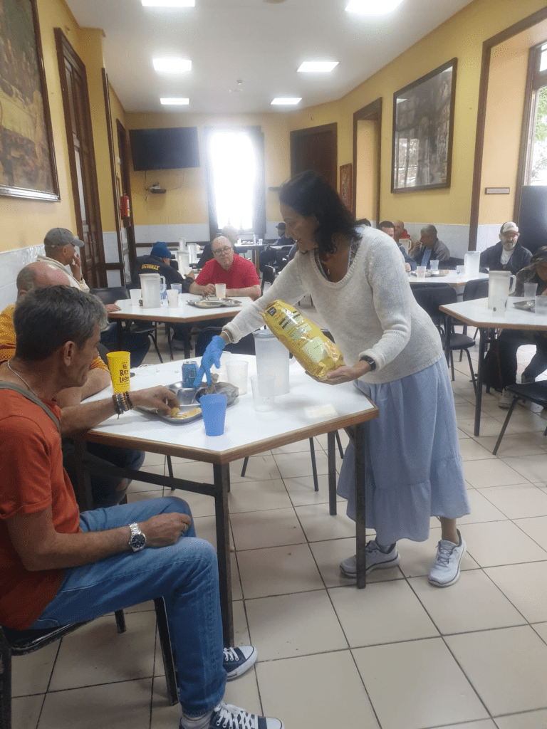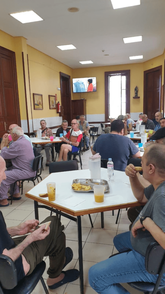 Se trata de una merienda especial, cada dos meses, para los 70 residentes de la «Obra Social». Es un centro de acogida y desarrollo para hombres indigentes.